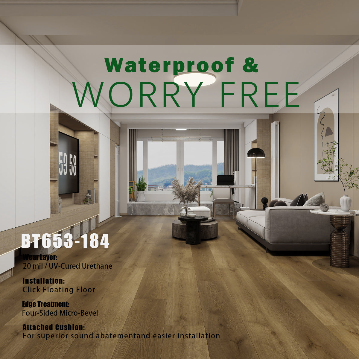 Scratch-resistant, stain-resistant, and moisture-proof, making it suitable for high-traffic areas and even damp environments like kitchens and bathrooms.