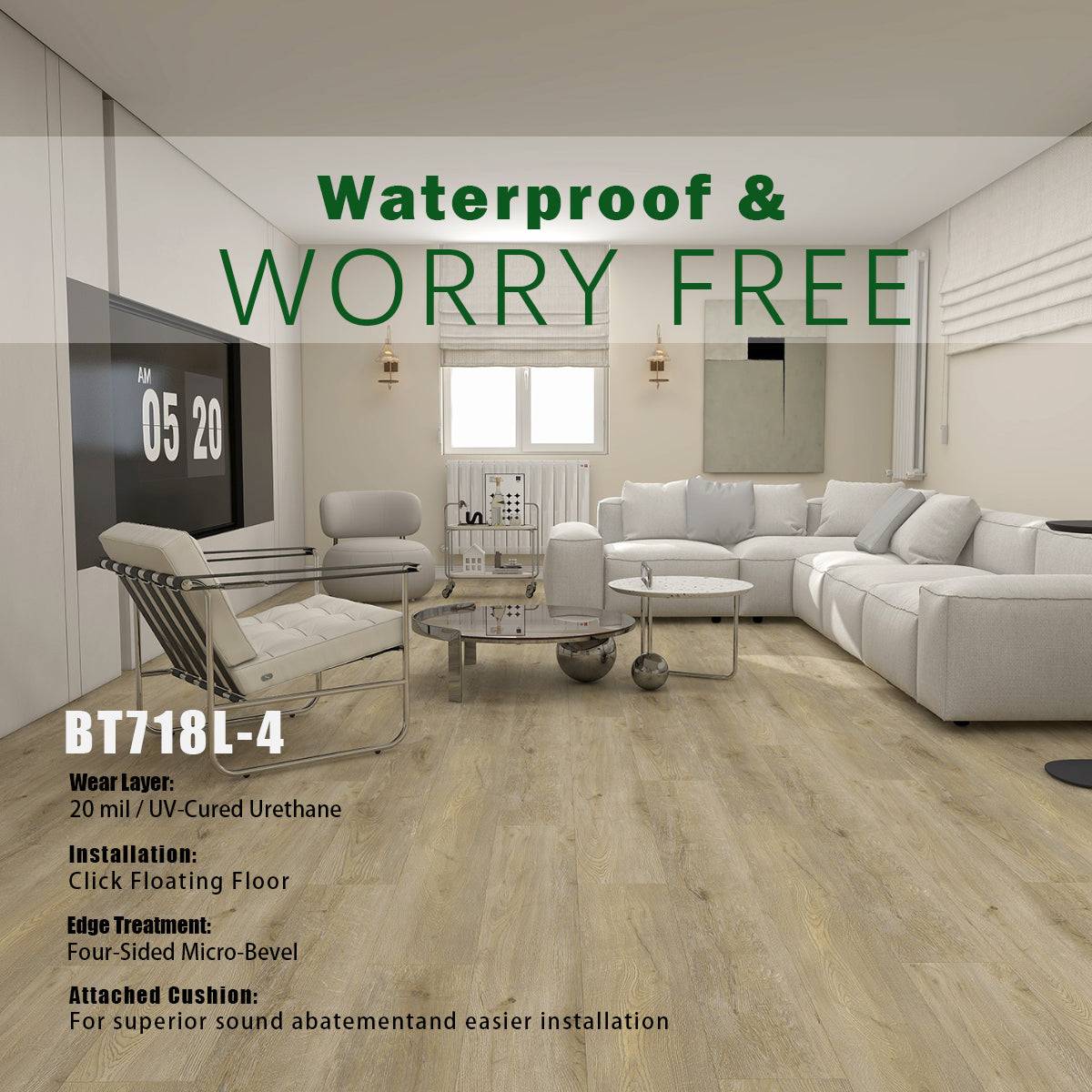 Scratch-resistant, stain-resistant, and moisture-proof, making it suitable for high-traffic areas and even damp environments like kitchens and bathrooms.